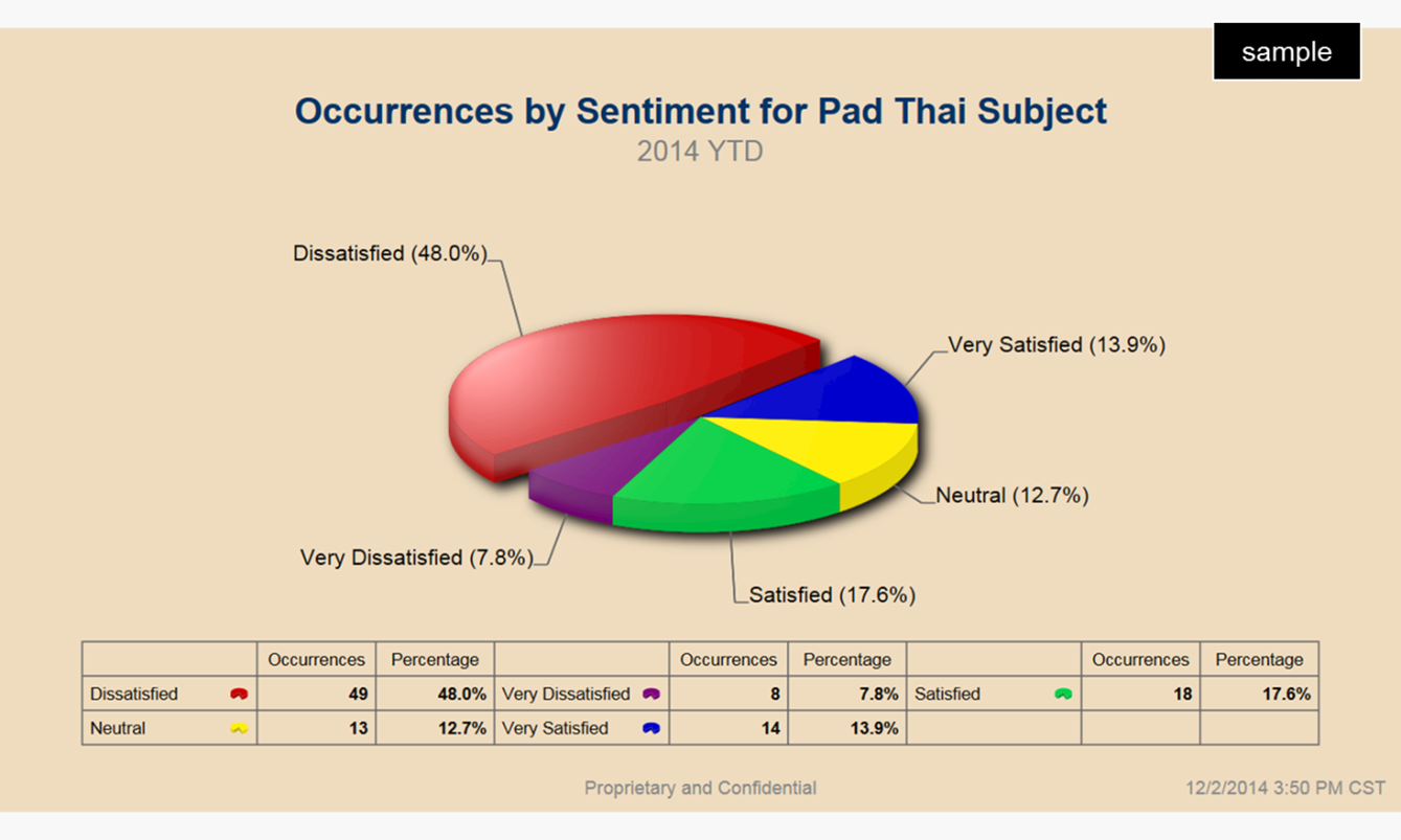 The reasons for complaints could have been many other factors. Sentiment analysis has told management that customers are unhappy with pad thai. Contextual analysis has shown WHY customers are unhappy with pad thai. Now management knows exactly what they need to do make customers pleased with the food and service they get at the restaurant chain.
