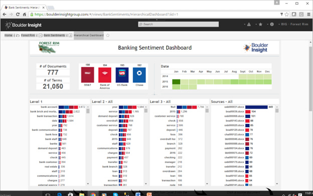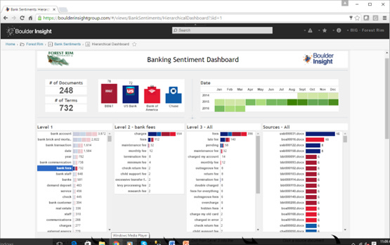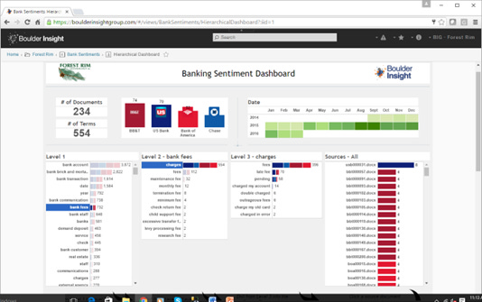 Fig 5 shows that in level 2 there is a breakdown of exactly what people have to say about bank fees. In other words, what is it about bank fees that is on people’s minds as they make a complaint. The ability to do the drill down is a result of the contextual analysis that has been done.