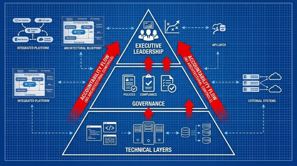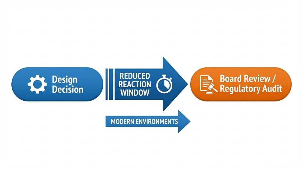 This acceleration changes the nature of executive risk. The question is no longer whether the system works today, but whether it can explain itself tomorrow. When answers are required quickly, architecture is either present or it is not. There is no retroactive substitute.